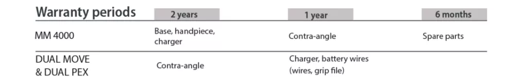 This extended collaboration enables us to offer an even higher level of service, thanks to more than 30 years of mastered skills experience in rotary instrument repair. Warranty starts at the purchase of the good by the End-Customer (invoice under
